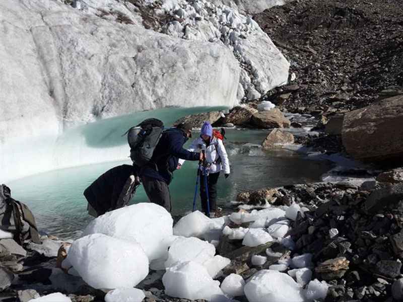 After breakfast trek to Kutwal Lake. We will be needed rope to get down the steep snow slope.